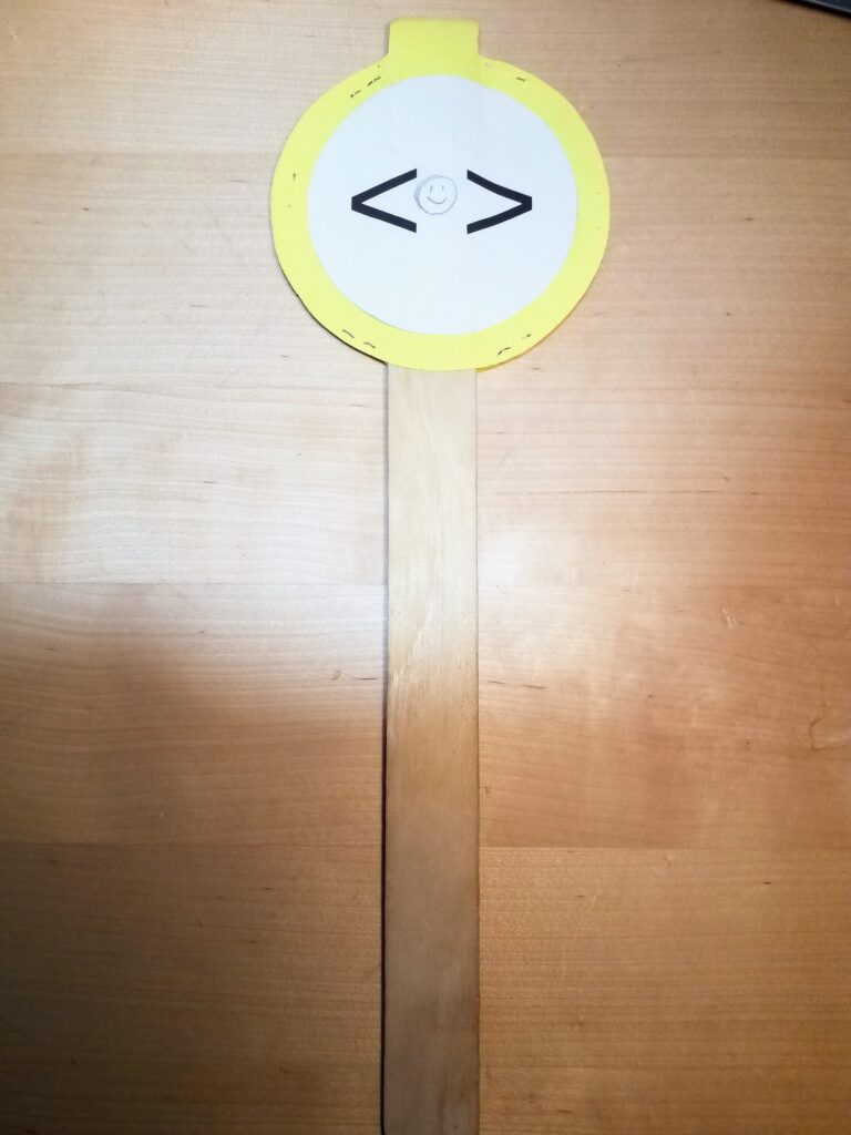 HTML stands for Hypertext Markup Language which is how webpages are written. The simple code below says, read and display a Smiley Face, then stop. The </> is the “red” light in the childhood game. The children move forward with the “green” until freezing with the stop.